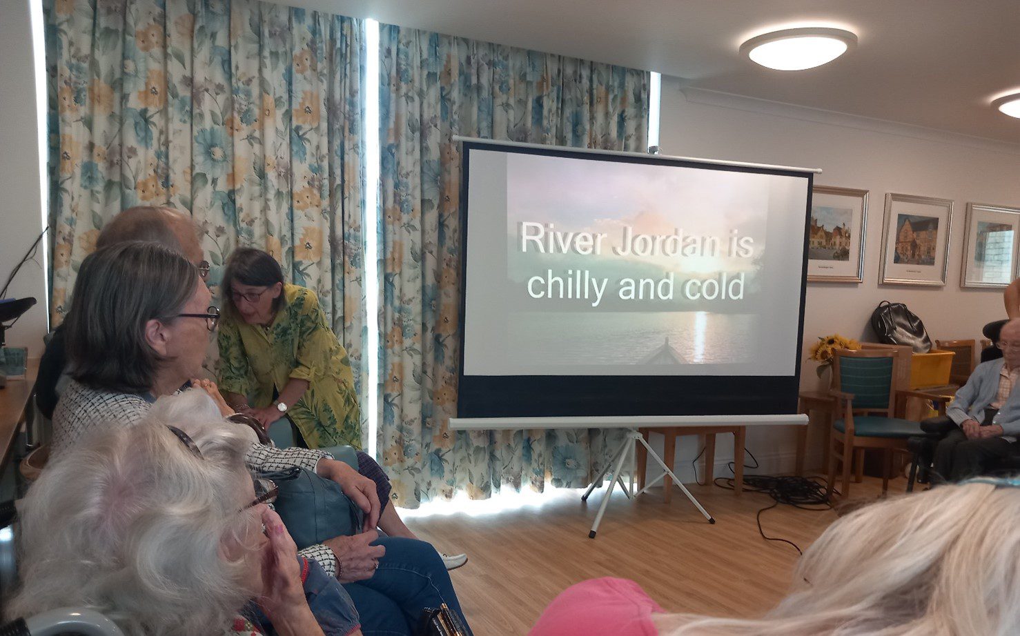 Our weekly dementia-friendly service took place in the cozy garden view lounge, creating a warm and inviting atmospheres for all attendees. The sense of family was palpable as numerous family members gathered to sing hymns and songs together, fostering a strong sense of community and togetherness. It was a beautiful opportunity for everyone to come together and express gratitude in a meaningful way.