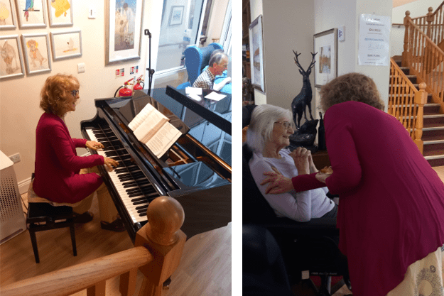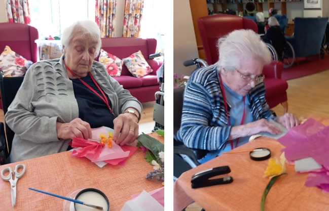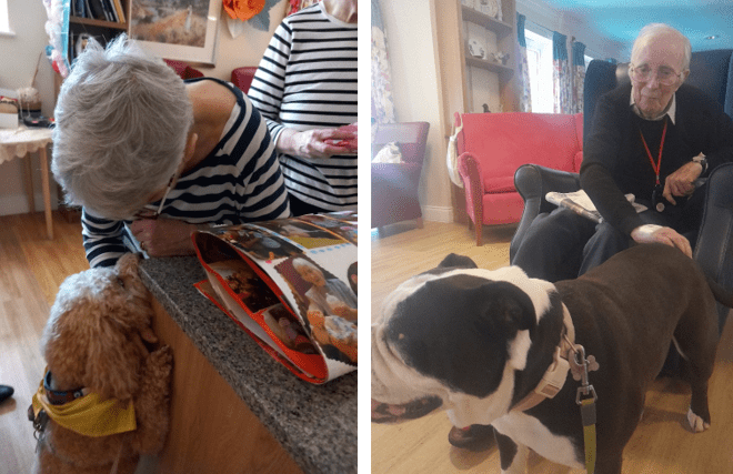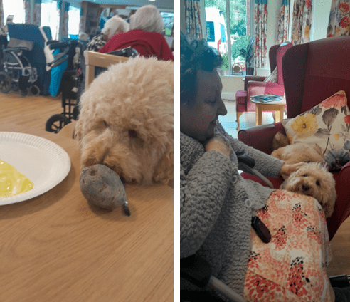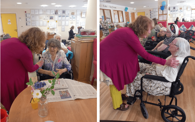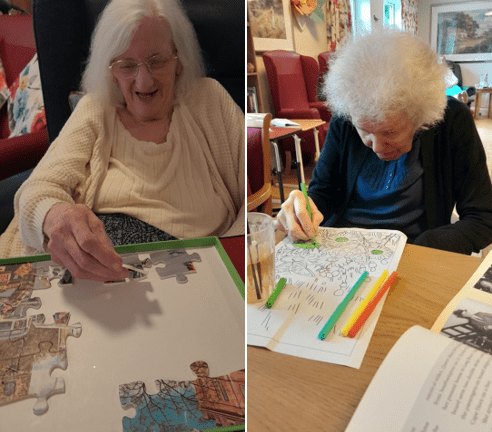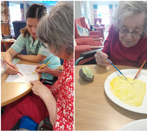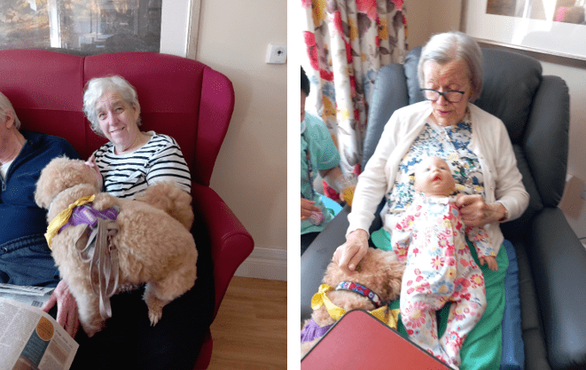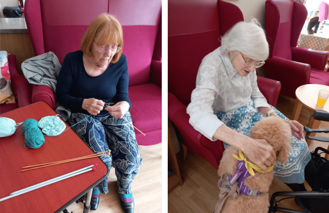 Our garden view lounges were abuzz with a plethora of therapeutic activities during the afternoon. We indulged in a range of activities, from independent knitting sessions to heartwarming pet therapy sessions with our beloved furry friends, Tinkerbell and Mercedes.