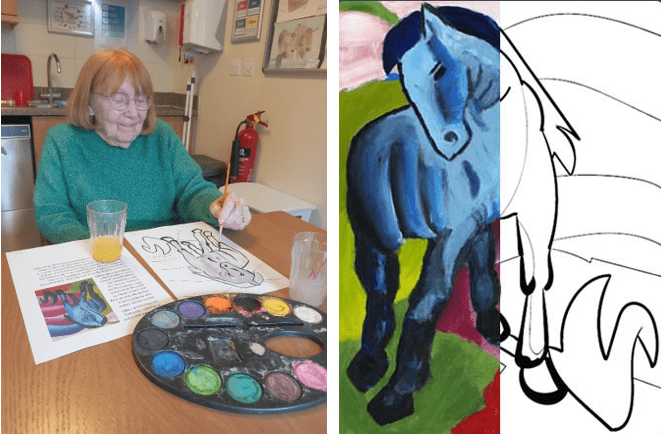In our art class this week, we drew inspiration from Franz Marc’s famous painting, the Blue Horse. With the help of the Artist Impression technique, we embarked on recreating this breathtaking image using vibrant watercolours. The class was filled with excitement as we carefully blended the colours and brought the majestic blue horse to life on our canvases. It was truly a remarkable experience to witness the transformation of our artwork, capturing the essence of Marc’s masterpiece in our own unique way.