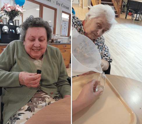 Our afternoon was filled with delight as we gathered in the lounge to watch Royal Ascot on the expansive TV screen, immersing ourselves in the excitement of the event. Meanwhile, a few of us took to the vegetable garden, tending to the plants with care and dedication. The sound of laughter and chatter filled the air as others sat down to paint pebble markers, adding a touch of creativity to the garden. It was a perfect blend of relaxation, entertainment, and productivity, making for a truly memorable day.