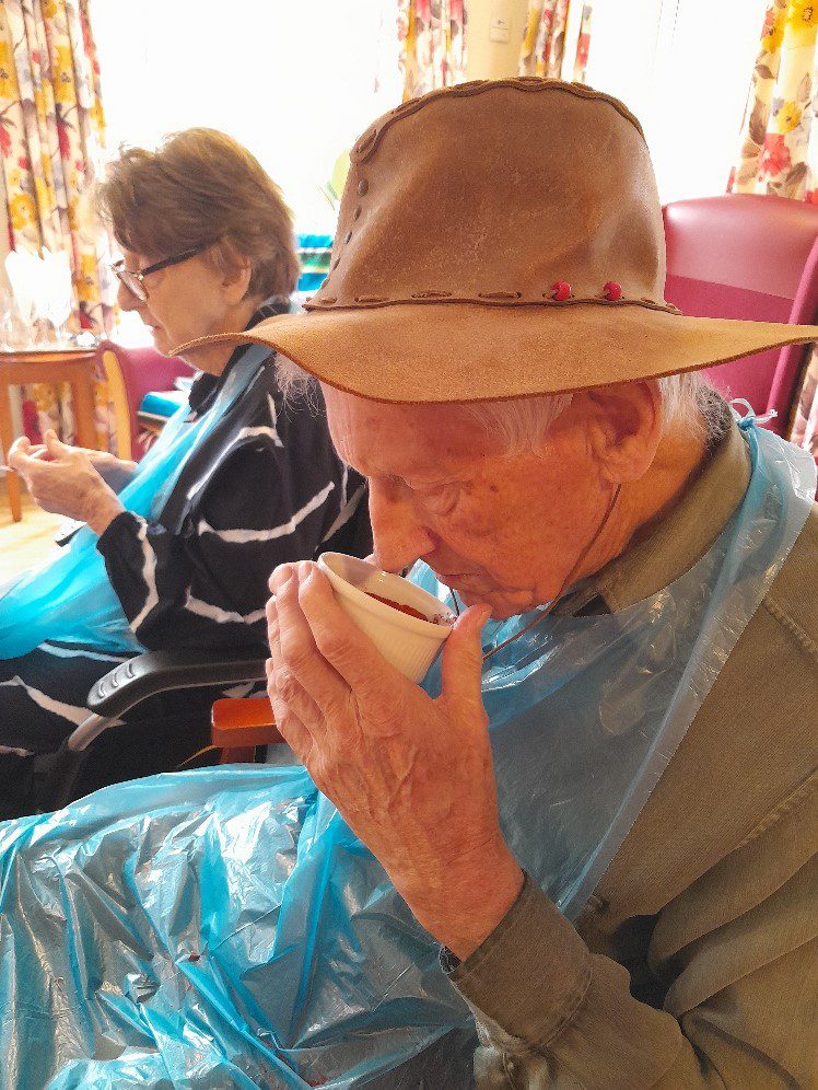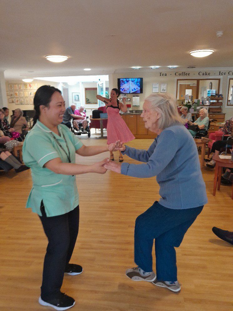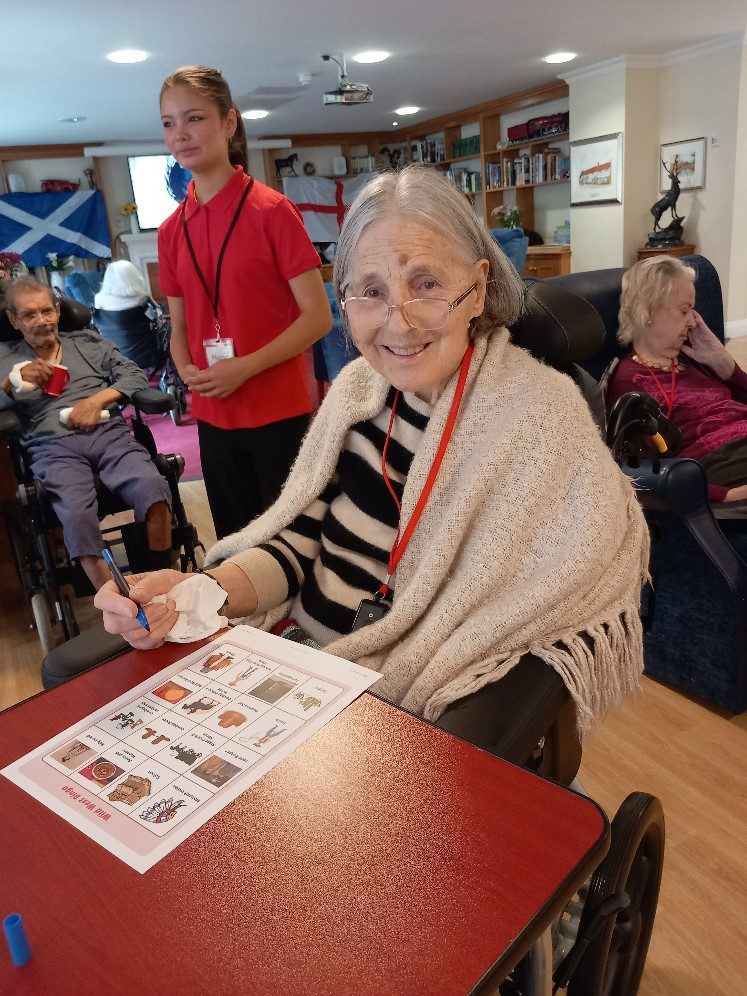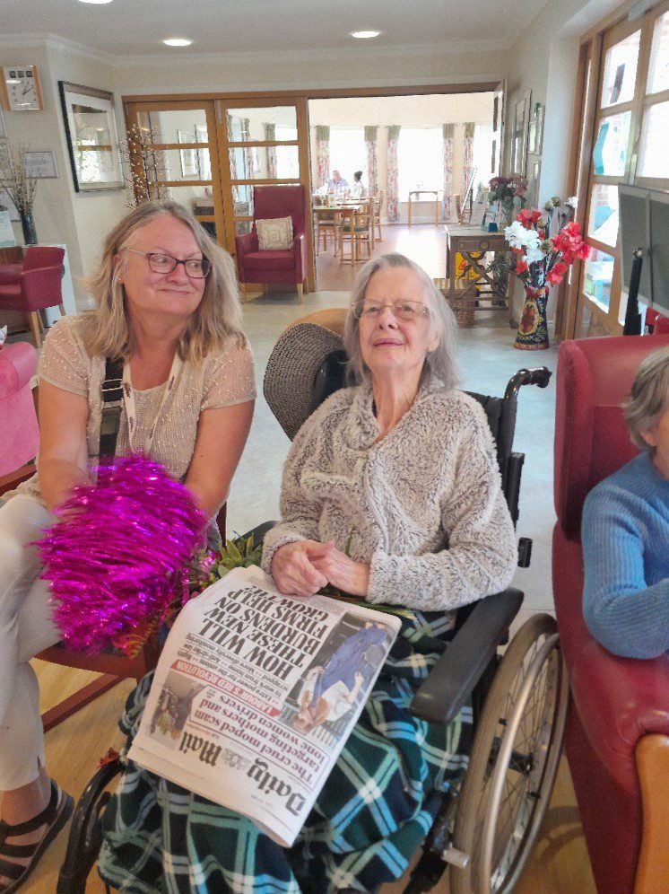 On Tuesday, we enjoyed a lively game of balloon tennis in the lounge overlooking our beautiful garden. The atmosphere was filled with excitement as we bounced the balloon back and forth, trying to keep it from touching the ground Laughter filled the room as we chased after the balloon, trying to outmanoeuvre each other in this fun and energetic game.