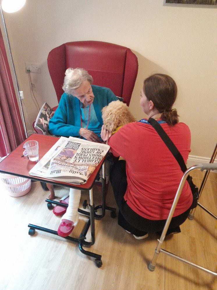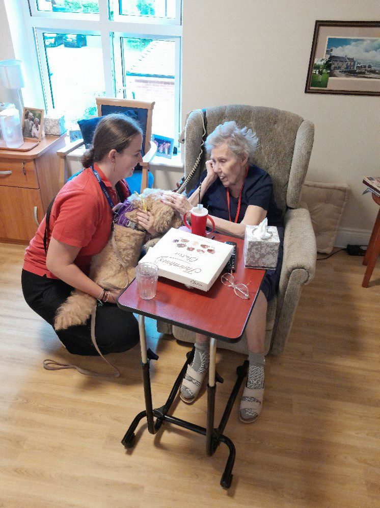 On Saturday, our cherished PAT dog Tinkerbell made her rounds in the home, spreading her soothing presence to everyone she encountered.