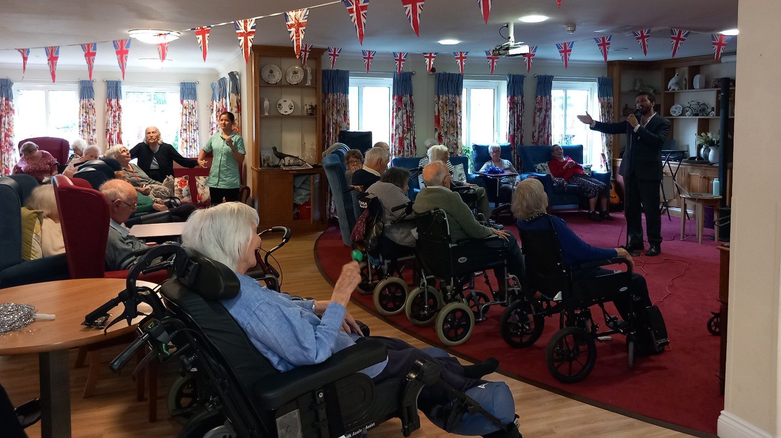 Meanwhile, in the garden view lounge, we participated in a dementia-friendly service. This consisted primarily of hymns and other religious music, with a couple of bible readings in between. We like to sing along to the music, and often get up and dance.