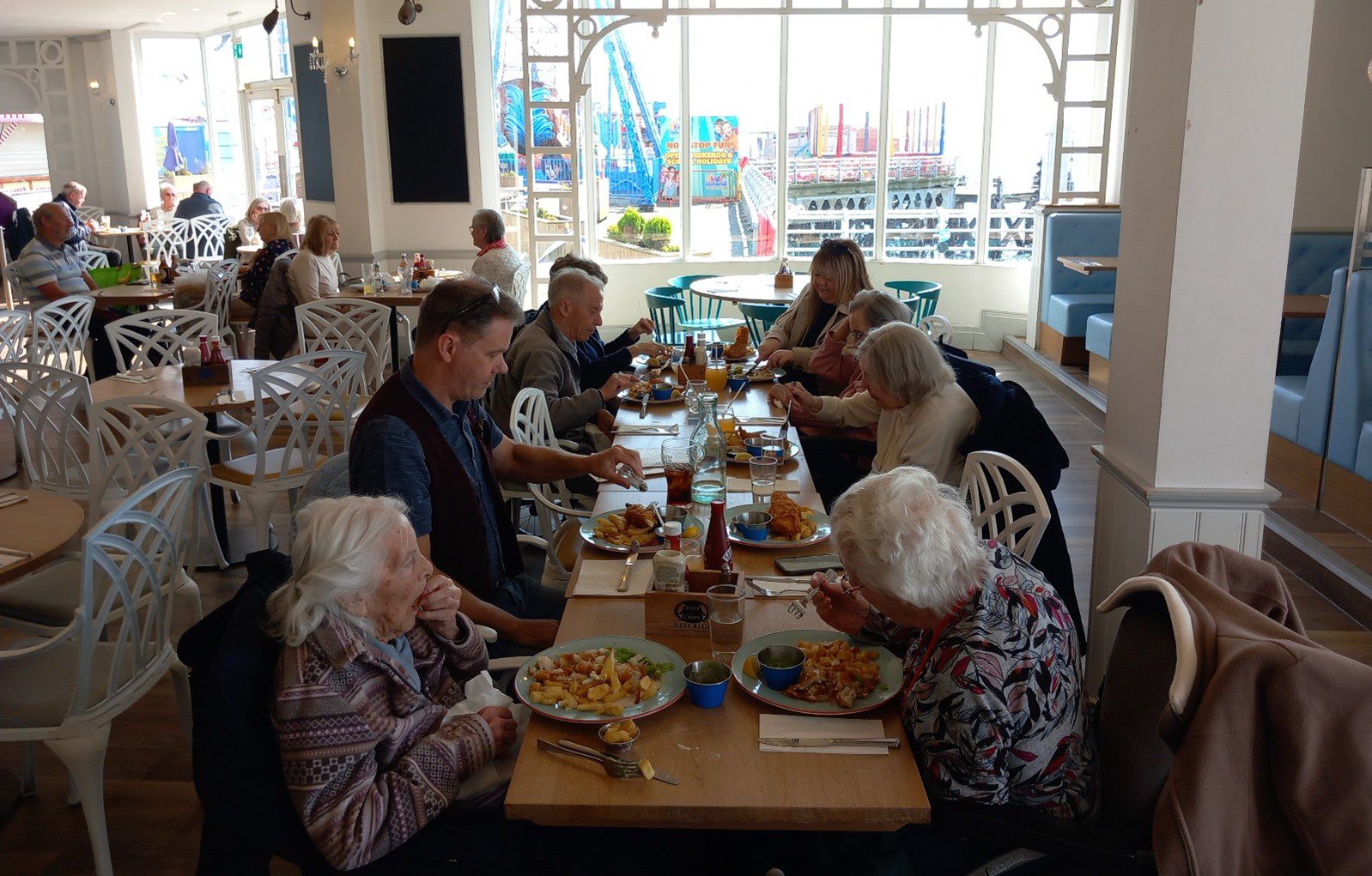 On Friday, some of us went out for the day to visit the Pier in Southsea. We explored the pier, admired the ocean, and enjoyed a delicious fish and chip lunch. It was wonderful to feel the sea air on our faces, and to listen to the ocean waves on the beach below us.
