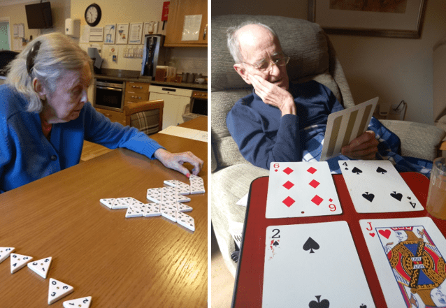 Meanwhile, in the garden view lounge, we spent the morning playing board games. We played cards, and three-sided dominoes.