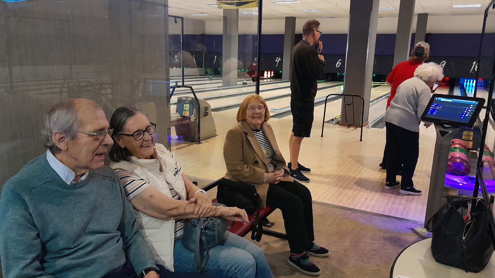 On Tuesday morning, some of us went tenpin bowling in Camberley. We practised our bowling skills in a tense competition between us and the residents from Hill Brow next door. It was exhilarating! We had a cup of tea before making it back just in time for lunch.