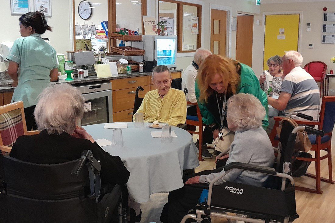 In the garden view lounge, however, a dementia friendly church service was taking place. This service was filled to the brim with music, dancing, and singing.